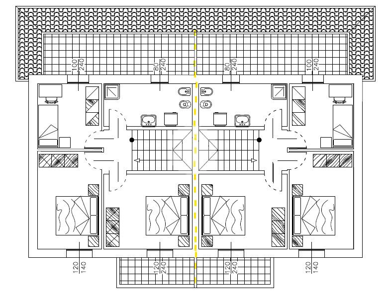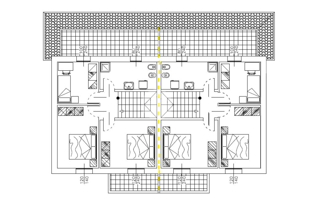 Al primo piano troviamo due camere da letto matrimoniali di cui una con terrazzo, una camera singola con ulteriore terrazzo di 14 mq. e bagno.