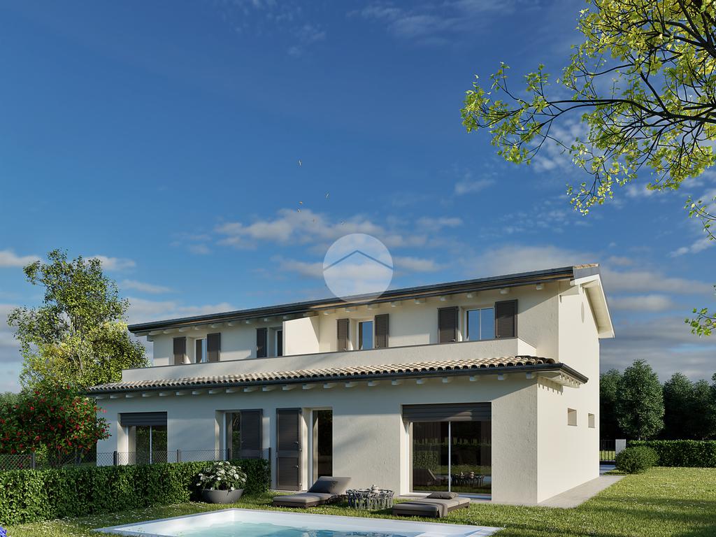 Proponiamo in vendita in esclusiva a Fellegara, in contesto residenziale e lontano dal caos cittadino, 2 villette abbinate di nuova costruzione in classe A4 con ampie metrature, giardino di 660 mq. garage e terrazzo.